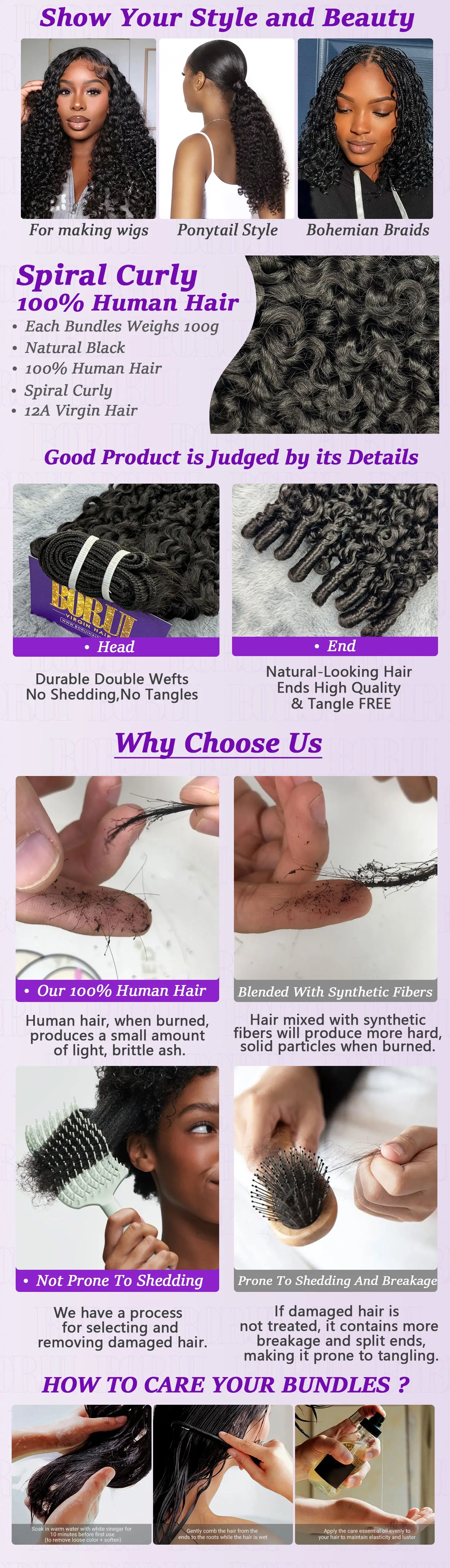 4PCS Spiral Curly Top Vrigin Hair Bundles | 12–30 Inch |Boruihair | 100% Human Hair